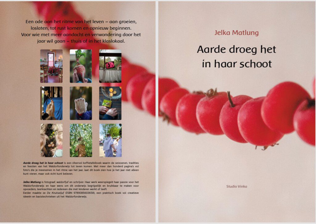Vanuit de wens om het waldorfonderwijs toegankelijker en begrijperlijker te maken heb ik twee boeken gemaakt: De Knutseljuf & Aarde droeg het in haar schoot. De Knutseljuf is een creatief handboek, vol met knutselwerkjes en -technieken. Aarde droeg het in haar schoot is een inspirerend fotoboek met meer dan honderd sfeerbeelden over opgroeien, seizoensbeleving en de jaarfeesten. Twee verschillende boeken die beide hun wortels hebben in het waldorfonderwijs.
